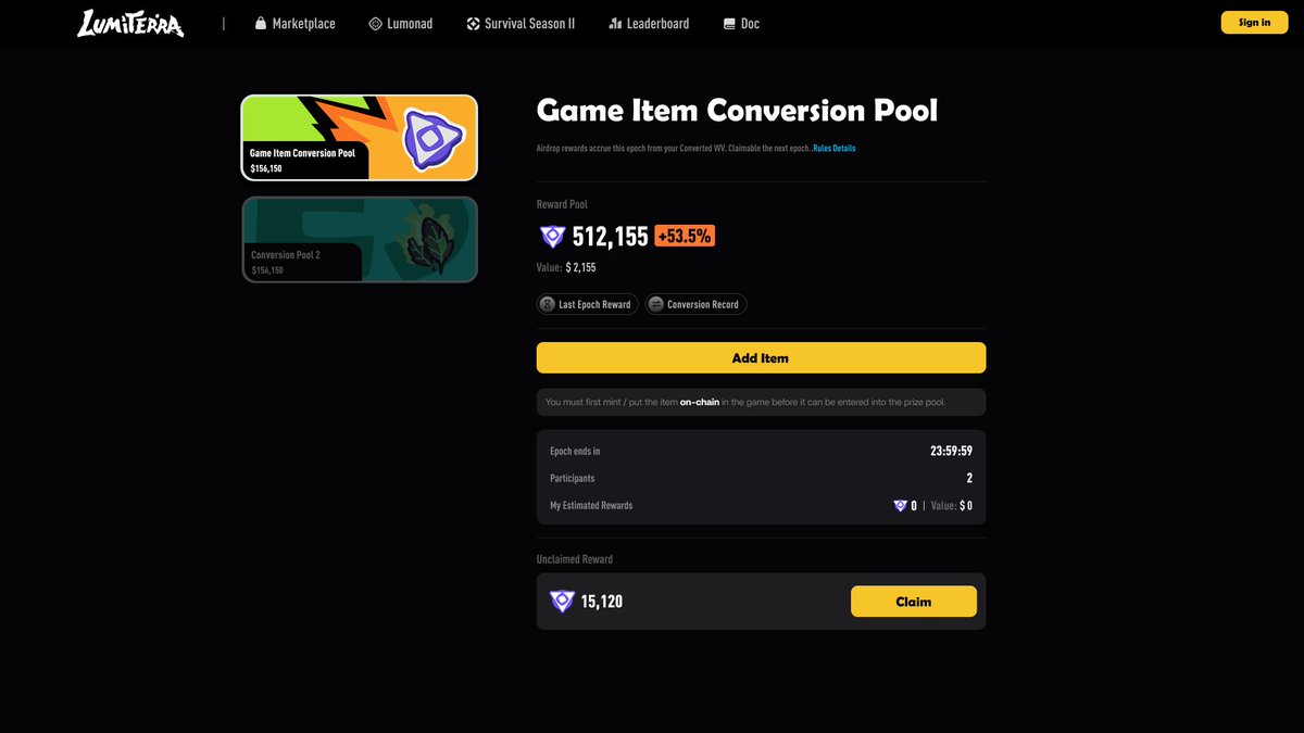 →Reward pool and item conversion flows
