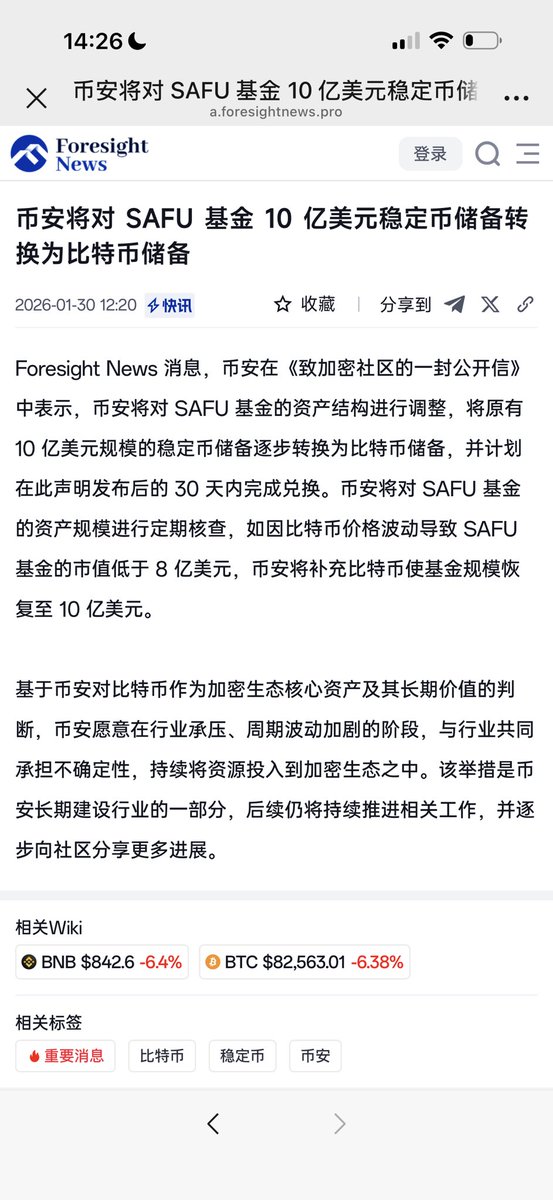 行业正在通过头部平台被外界审视。在市场承压期,比起口头承诺,社区更需要看到像 SAFU 资产调整这样具体的风险对冲方案。