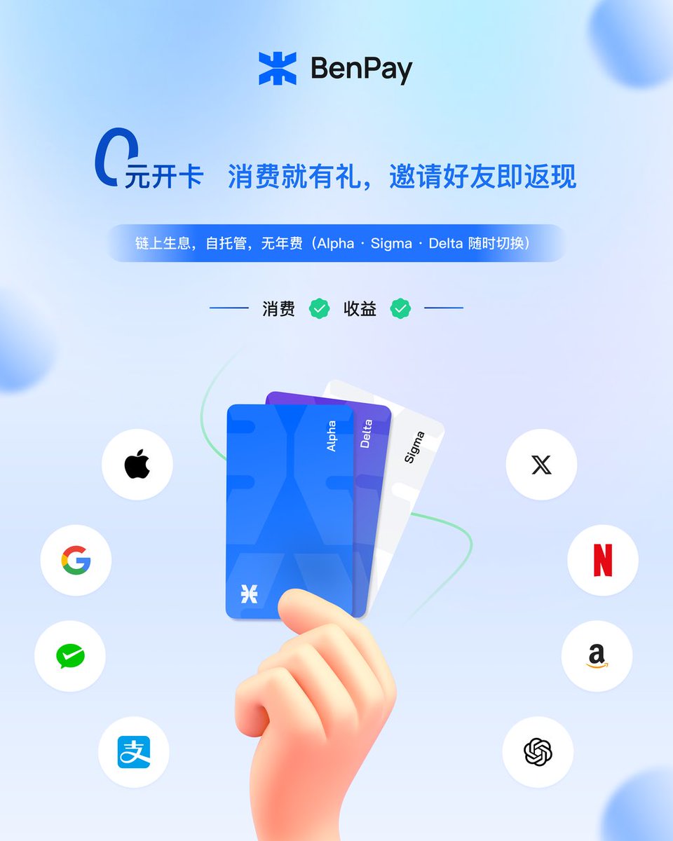 💳 能生息的加密卡: 以前卡里的钱是“死”的,现在支持边赚边花。资金在卡里自动跑链上生息(BenPay DeFi Earn),喝咖啡或购物时直接划扣,主打一个资产零闲置。