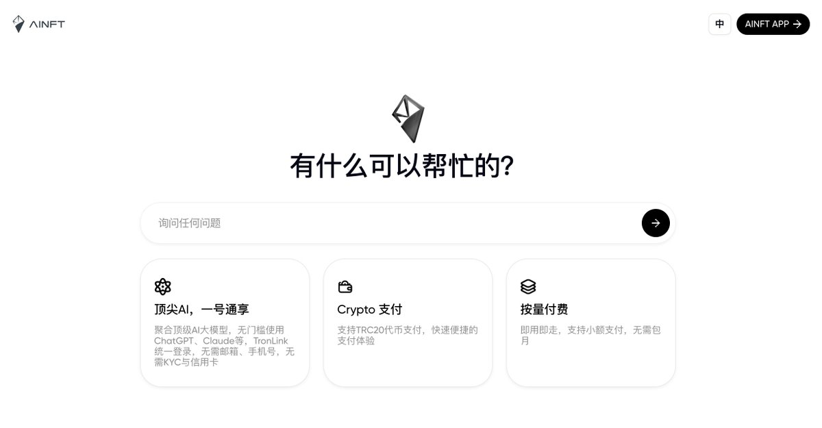 2️⃣ Web3 原生的隐私与安全传统的 AI 服务需要邮箱、手机号甚至信用卡信息。在 AINFT,你的 TronLink 钱包就是你的通行证。去中心化登录确保了用户隐私,而链上结算则消除了传统支付带来的账户冻结风险。