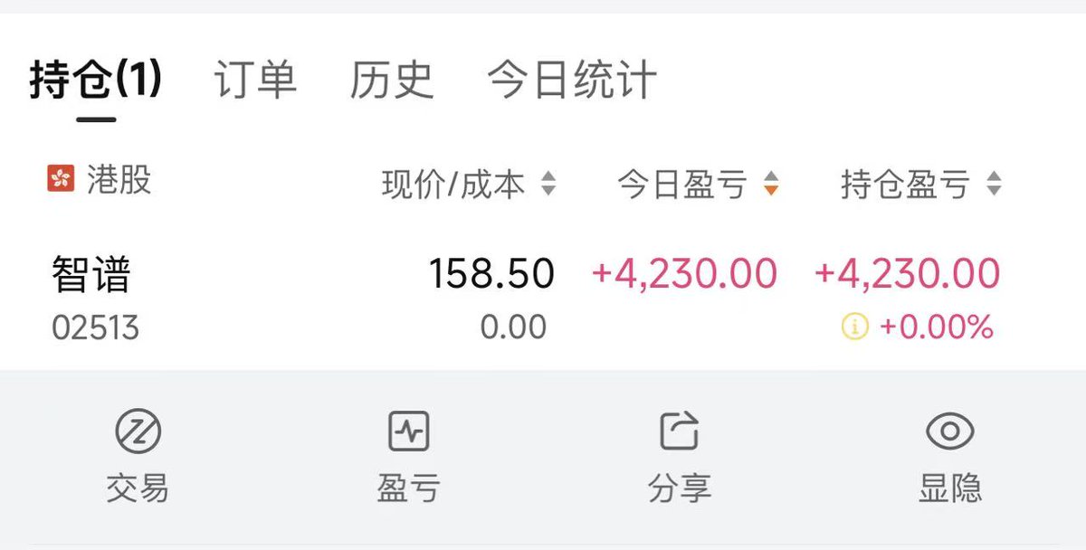 更新上一期港股打新,目前只中了智谱 (https://t.co/ryj5Coy1qg),暗盘直接出了,算是高点了,每手赚4230港币!