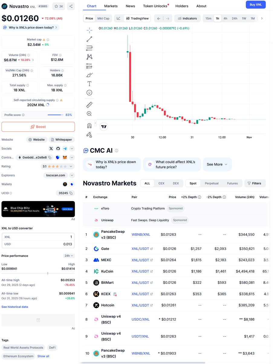 结果 $XNL 上线当天直接跌穿发行价,FDV 目前仅剩 $12M,听说项目方直接撤了池子软RUG。