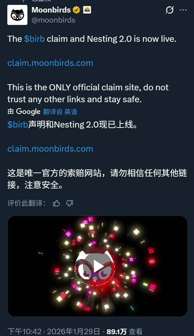 持有NFT可以获得 $BIRD 空投,但需锁仓24个月,每月解锁1/24份额的代币 。
