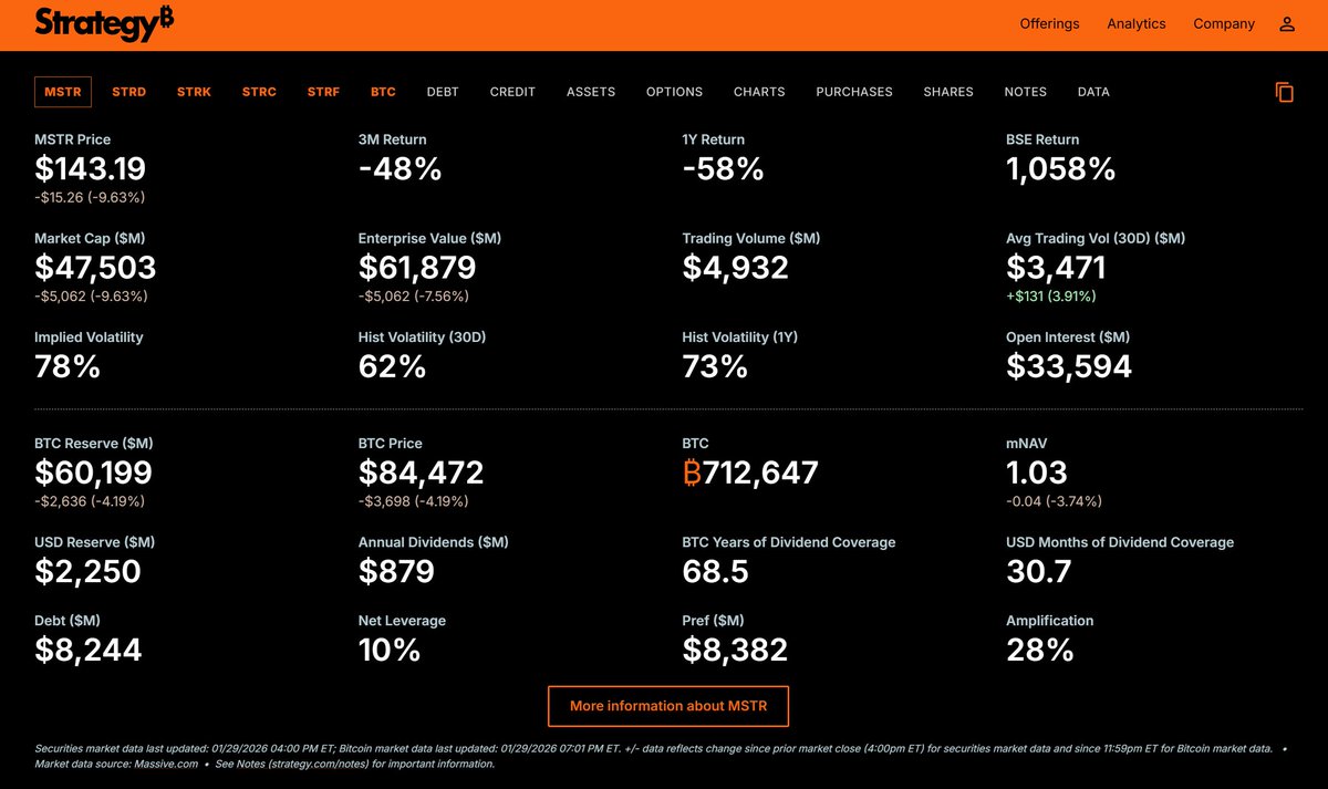 但 $MSTR 最近三个月股价直接 -48%,当前市值只剩 $47.5B。
