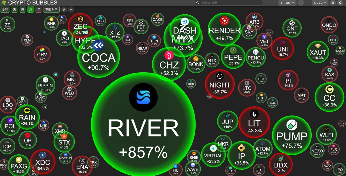最近这行情,真是铁打的 $BTC ,流水的妖币。基本面扎实的大项目一个个趴着不动,反倒是 $COAI 、 $AIA 、 $MYX 、 $RIVER 这些看起来不太讲逻辑的妖币,动不动就是几十倍、上百倍的涨幅在造富。很明显,市场阶段变了,投研方式也跟着变了。