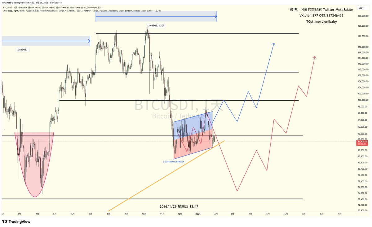 仿佛昨天还在欢庆 $BTC 目标冲击 $100K, 现在反弹连 $90K 都站不上去。