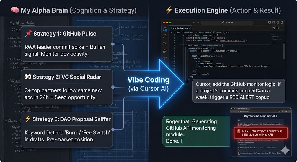 投射到加密领域,这意味着我可以用 Vibe Coding 抹平与顶级机构的信息差。 “不会写代码”不再是借口。甄别 Alpha 和理解市场脉搏的能力,才是我唯一的利器。