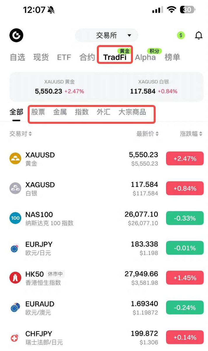 不只是加密货币,TradFi + 合约专区直接一把拉满