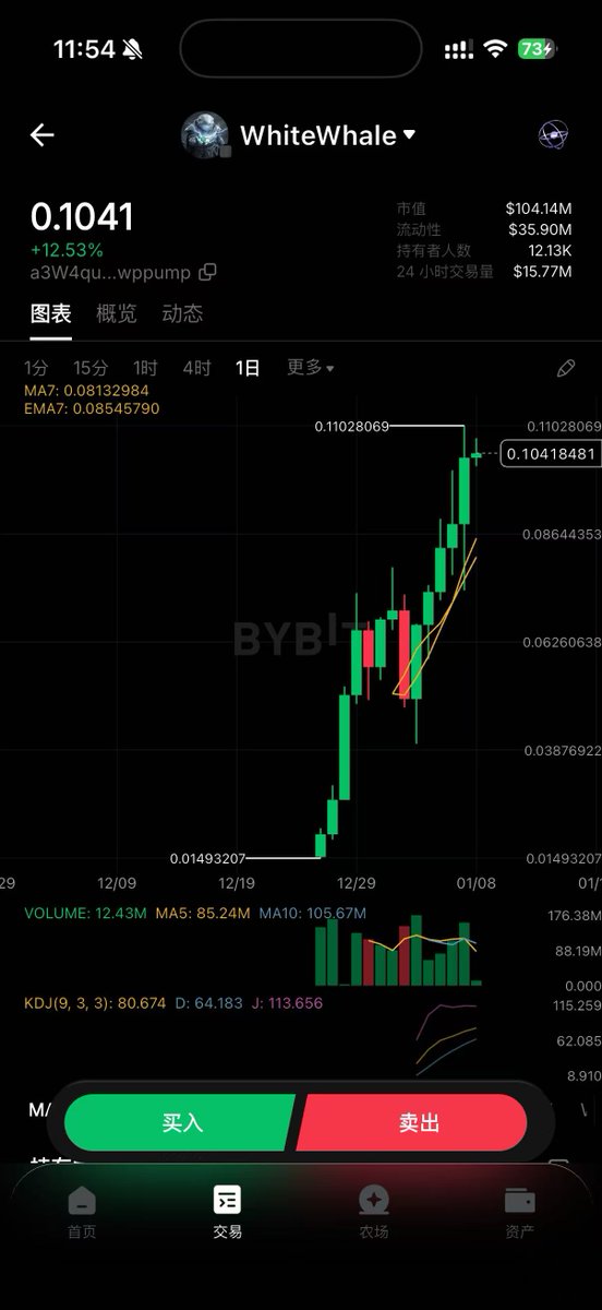 Bybit 在大部分国人还不了解这个币的时候,便挖掘了它,从上线bybit alpha算起,涨幅已达7倍。目前Bybit也支持WhiteWhale现货了,整体流动性和交易体验都会更好。
