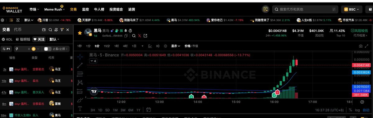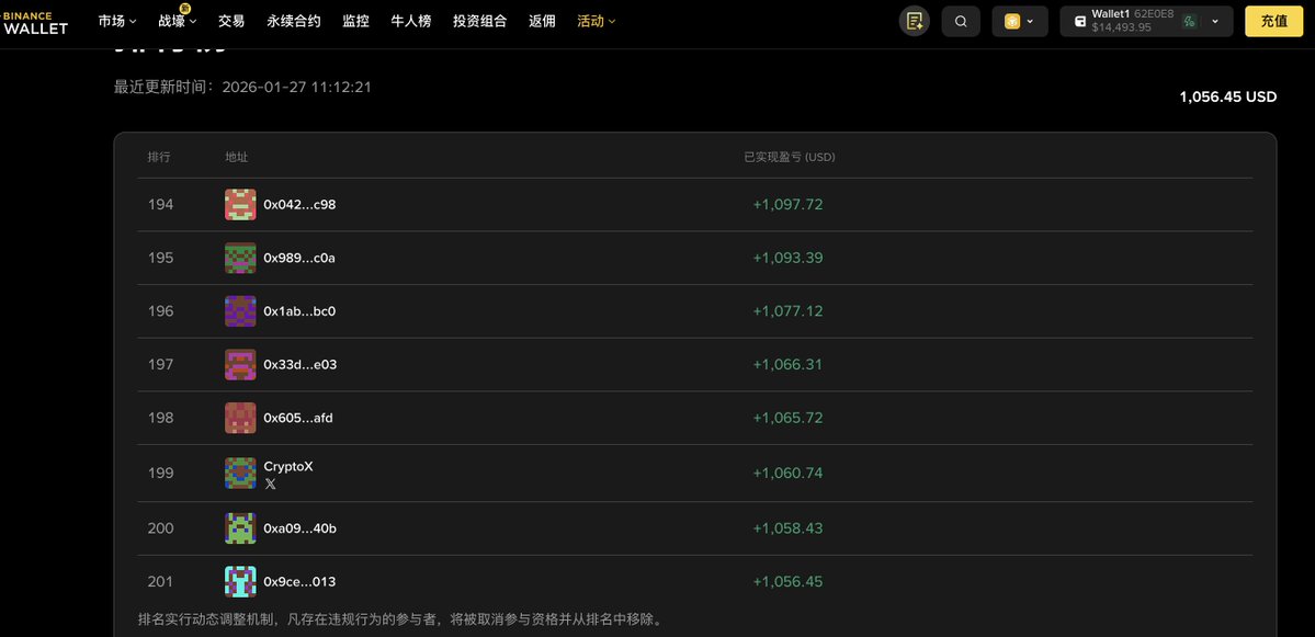 还有5天币安钱包交易赛就要结束了,目前只要盈利1000U就可以进入前200名,获得最低0.1BNB的奖励。日赚200就可以满足了。好像也挺容易?