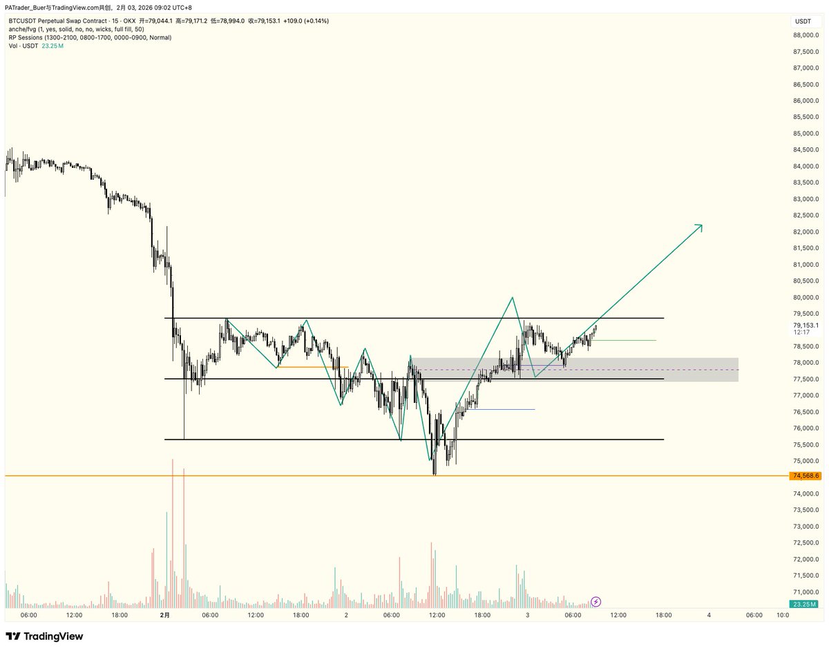 2) 暴力逼空,直接突破80 ,然后小回踩range—h 795 站稳,继续向上到84 。