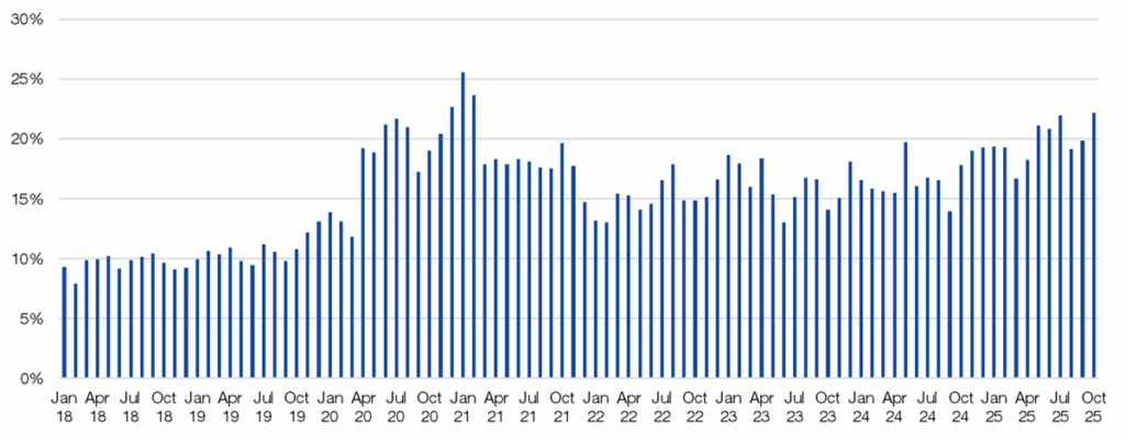 短期内市场可能出现“Sell the News”情绪,10月降息早已被价格消化,投资者对12月再降息的预期被鲍威尔言论压制,尤其是他明确表示除非失业率显著上升,否则不会继续降息。内部意见虽有分歧,但美联储整体仍偏谨慎。