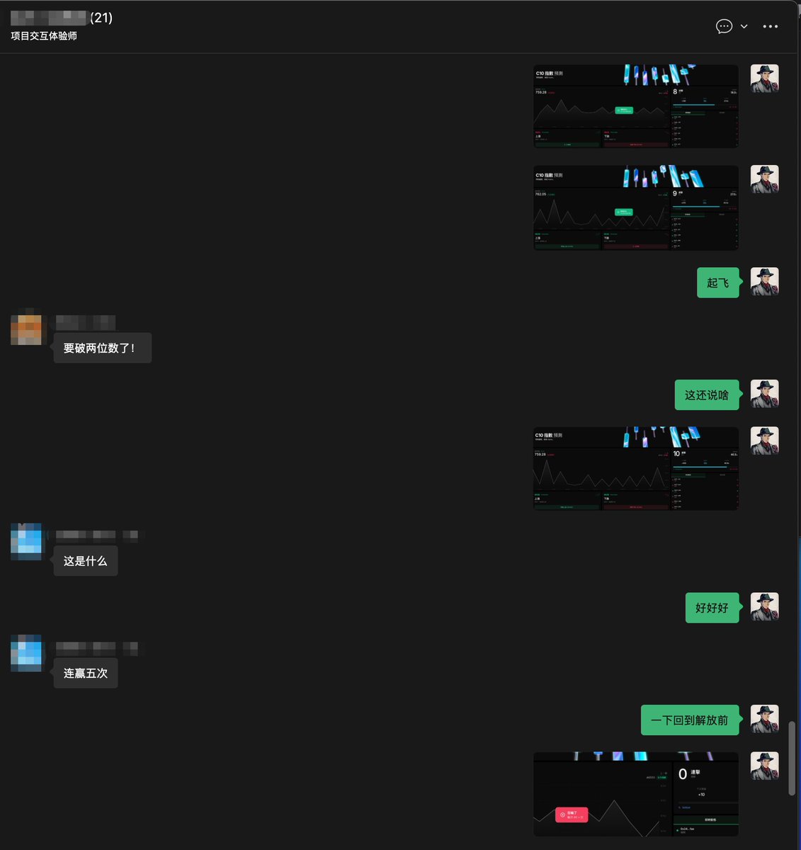 就怎么说呢,老贾做的预测市场的 @AIxC_Official 的5连击任务,完全就是验证你到底是非洲人还是欧洲人,目前我的记录是10连击~正得瑟呢,下一秒就归零了。。。这还是不花钱的,要是真的合约,估计早裤衩子都亏没了~~~