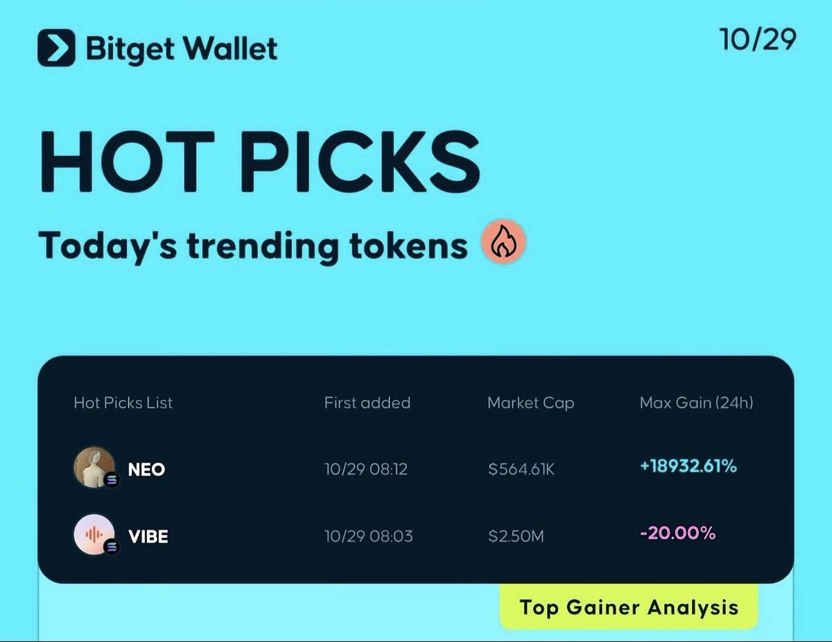 Bitget Wallet’s Hot Picks dashboard scans the market in real time surfacing tokens showing surging liquidity, volume velocity, and trending activity before they hit wider attention.