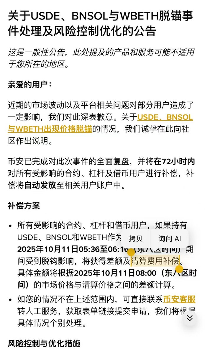 今日币安更新了中英文版的脱锚事件处理公告,里面加了同时赔付差额和强平费用。如此大气处理,远远超出预期,感激之情,难以言表。 致谢@cz_binance @heyibinance @binance @sisibinance 等币安同仁.