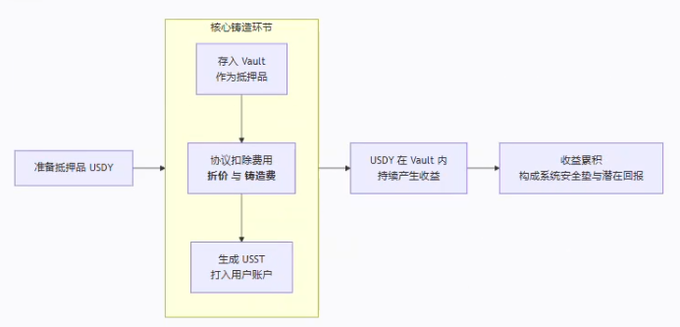 過程好順利,但佢心諗:鎖死咗嘅USDY,仲點生息?過咗幾日,佢出於好奇深入研究機制先至恍然大悟——鎖喺Vault裡便嘅USDY,原來從未停止過產生真實收益,只係收益以另一種形式(加固系統安全或未來回饋)存在。