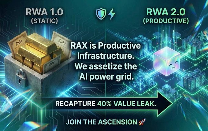 當整個RWA賽道還在圍著黃金債券這些「靜態資產」打轉時,RAX直接把AI電網這種能持續產生收益的基建給代幣化了——說白了,別人在賣「現成的貨」,我們在賣「印鈔的機器」 @RaxFinance
