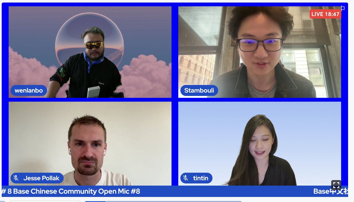 @Tintinx2021, @wenlanbo, and @stambouli_o1 will rep the chinese trenchers, creators, and builders - live chatting with jesse about building,