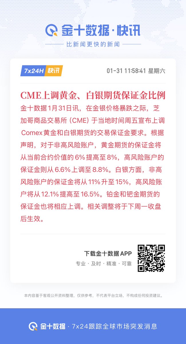 一边是CME上调Comex黄金保证金率从6%升至8%,白银从11%升至15%。