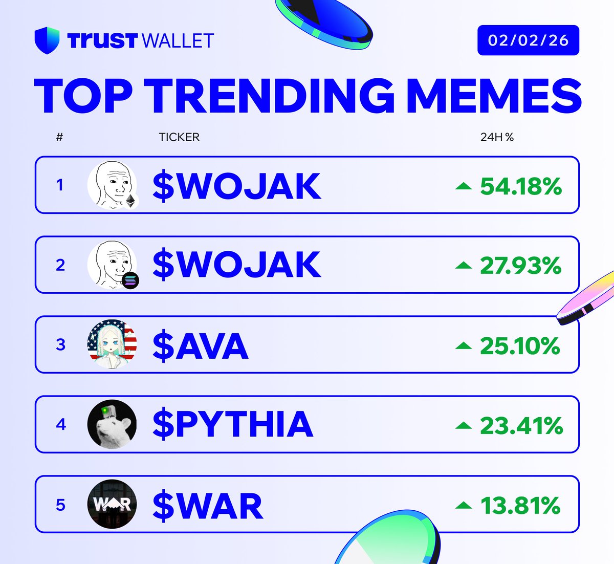 Trade today’s trending memes straight from your @TrustWallet