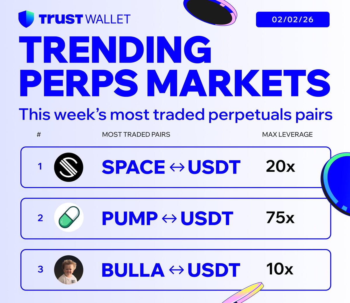 up to 200x leverage, tradable right from your @TrustWallet