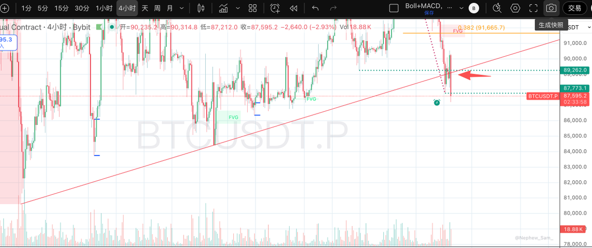 结果:不到 24 小时,BTC 从 90,000 关口断崖下跌,直扑 74,567 美元。