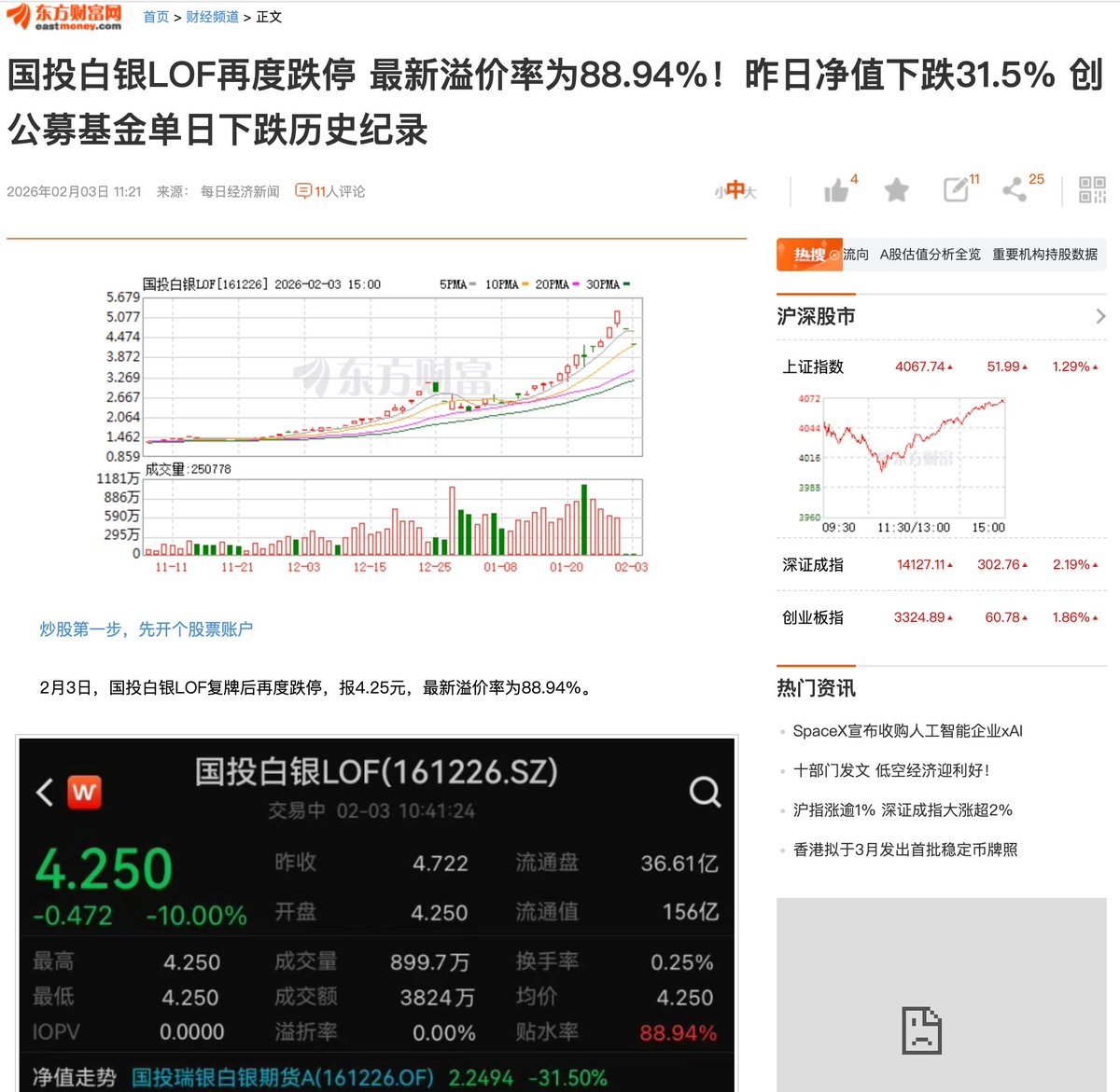 场内价格又能被情绪和溢价顶到天上,很多人冲进去根本不是在交易白银,而是在交易溢价不会崩的幻想