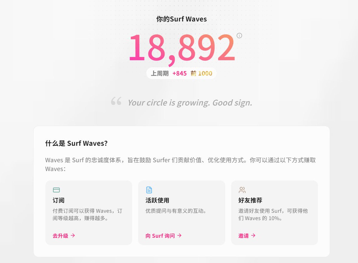 3、Surf @SurfAI 出了积分系统,大家可以查询一下自己积分
