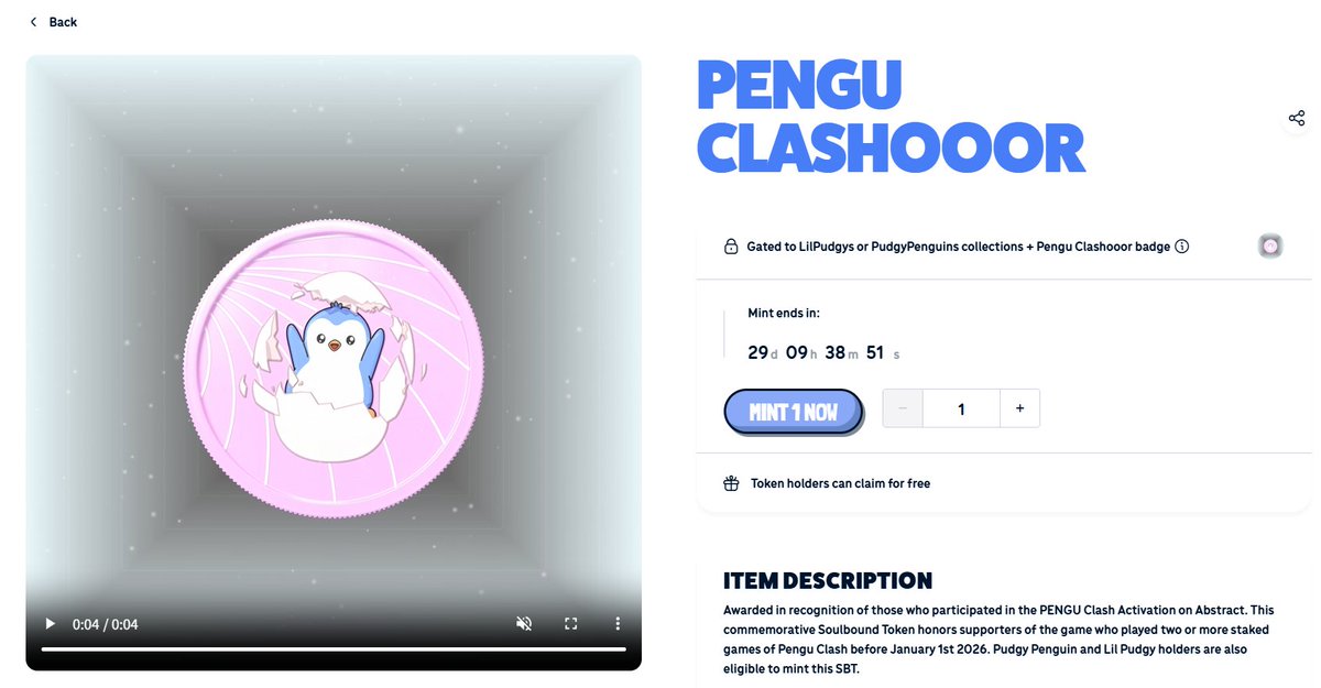 4、Pengu Clash SBT 现已上线,奖励给参与 Abstract 平台 Pengu Clash 活动的玩家