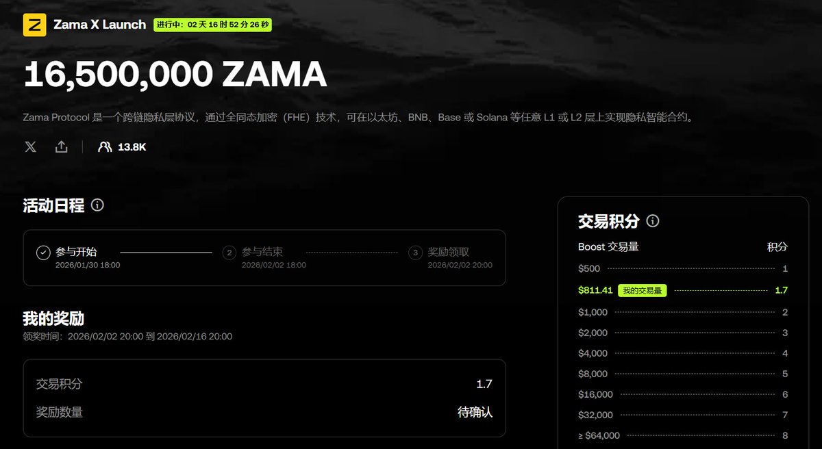 4、参加OKX @wallet 钱包新一期 X-Launch 活动,奖励共1650万 $ZAMA
