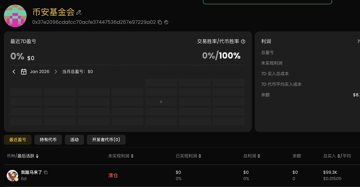 之前用基金会地址,在链上买了两次 $币安人生 和 $我踏马来了