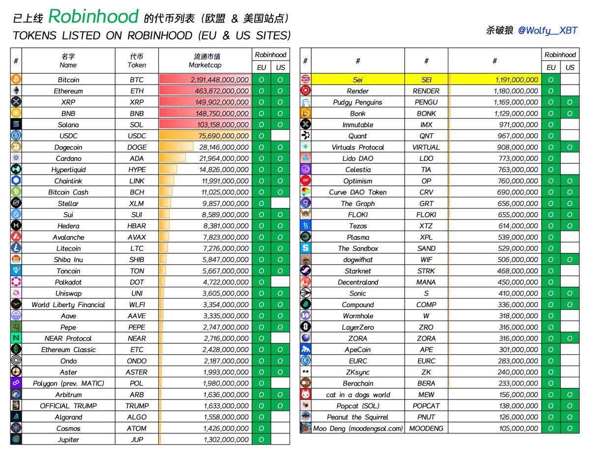 看到 $SEI 昨天上线 @RobinhoodApp 了