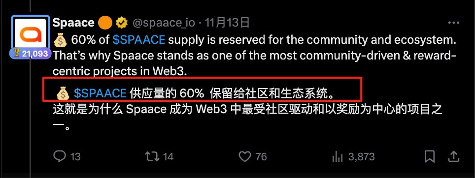 主要现在官方许诺将超过 60% 的 $SPAACE 总供应量将分发给社区 , 积分也很明确的提升 10X