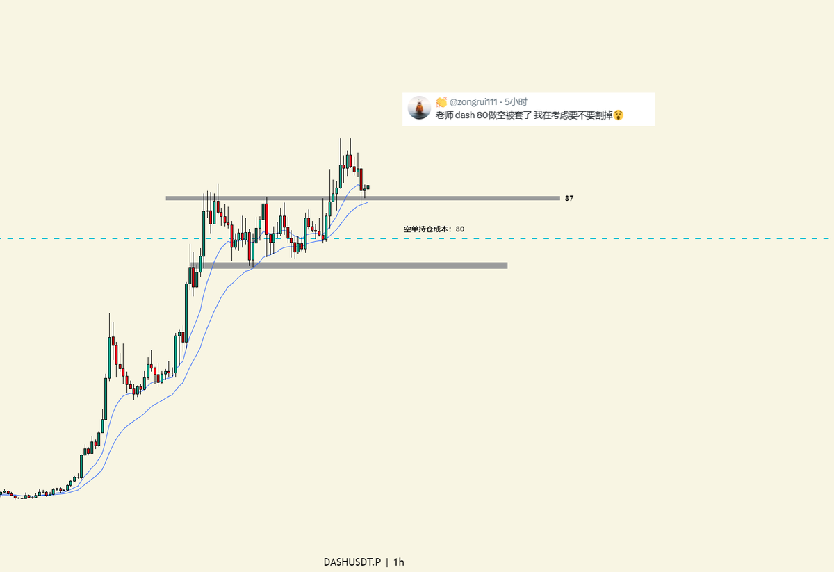 现在我是觉得你可以趁着现在价格回踩到 87 ,先止损。重新跌回这个区间后,再去尝试重新空。成本会高一点,但至少比它反弹被套更多强。