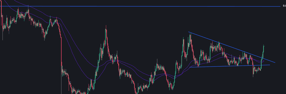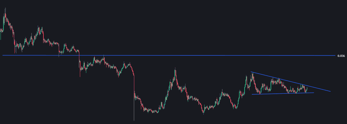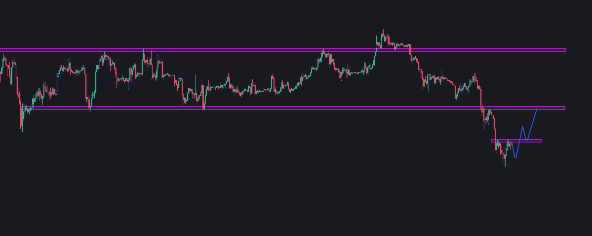 可以等价格回踩 0.38 产生有效反弹后,再去进场多单。TP的话就是前高,重新做 "大箱体震荡" 的预期。