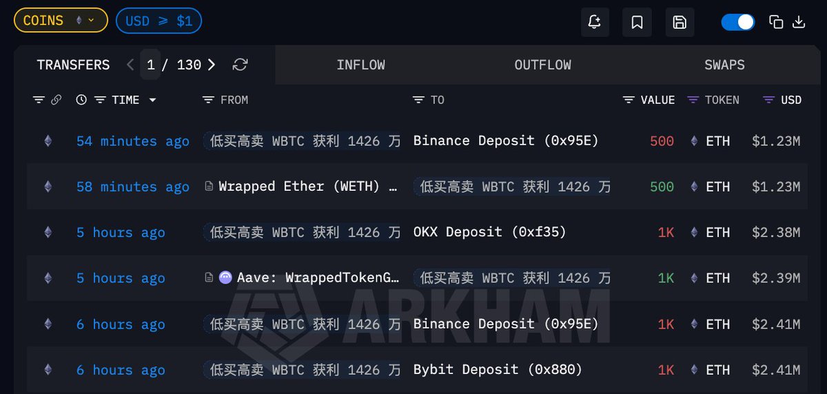 2️⃣ 曾低买高卖 $WBTC 获利 1426 万美金巨鲸