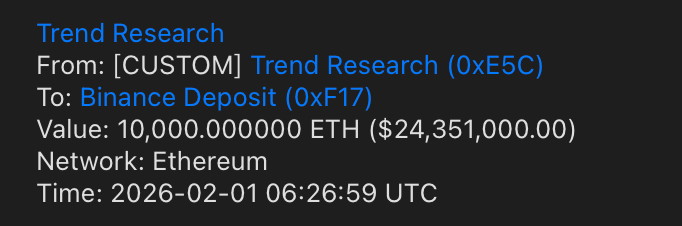 Trend Research 过去 24 小时已累计向交易所充值 4 万枚 ETH,若卖出将亏损 2964 万美元👀