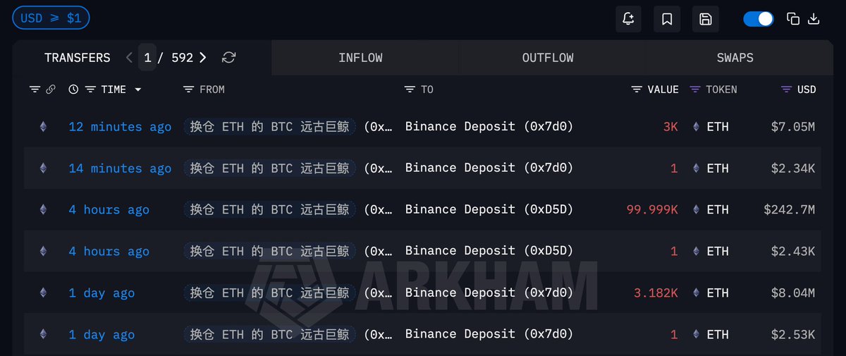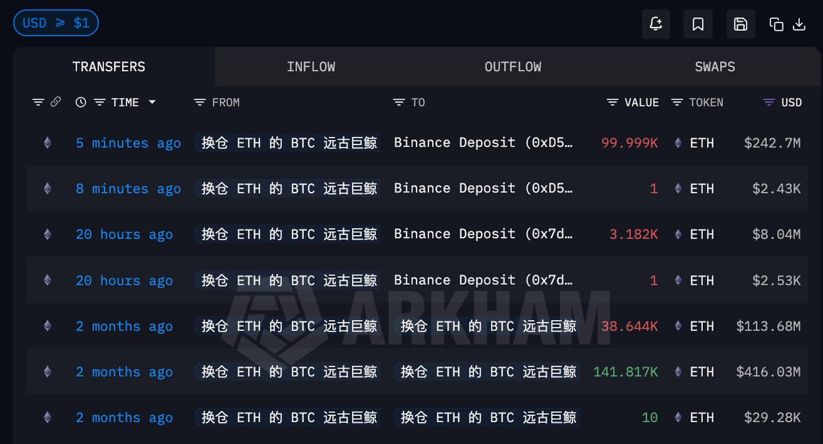 突发!凌晨刚爆仓 2.3 亿美元的 1011 巨鲸向 #Binance 充值了 99,998.97 ETH,价值高达 2.42 亿美元⚡️