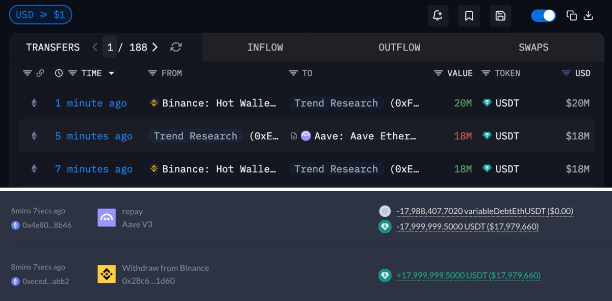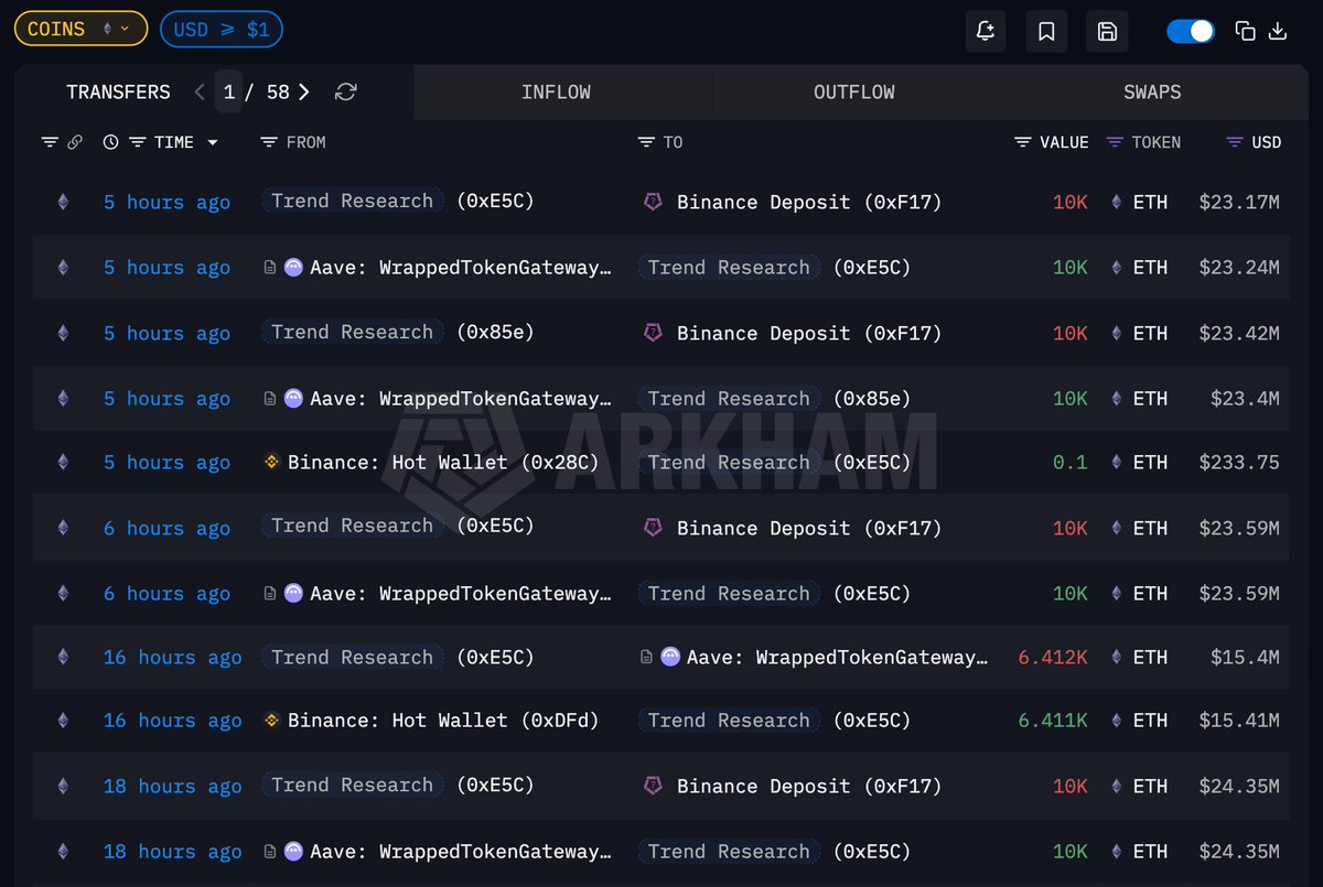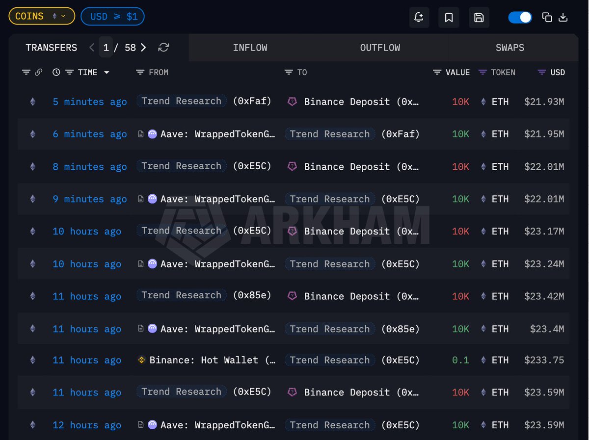 难喔,Trend Research 今天再次向币安充值了 3 万枚 $ETH 🥲