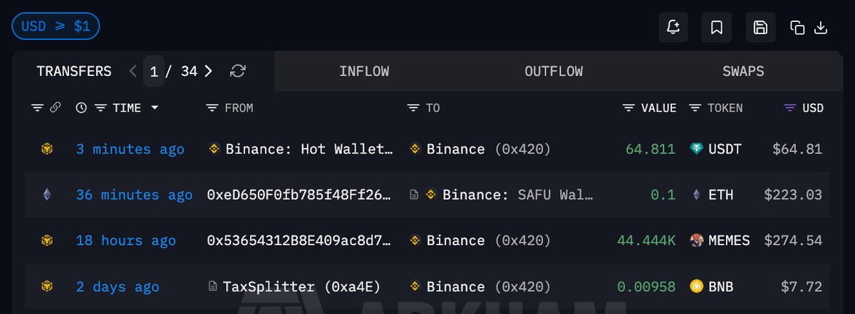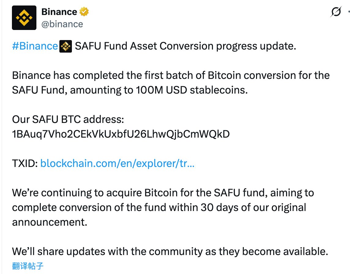 25 分钟前,1315 枚 $BTC 从币安热钱包提出至 SAFU Fund 地址,价值 1 亿美元 https://t.co/jwtBqU33sa