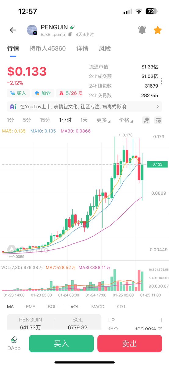 Meme 币 如“我踏马来飞了”单日狂拉 192%,DeFi 板块也出现局部反弹。