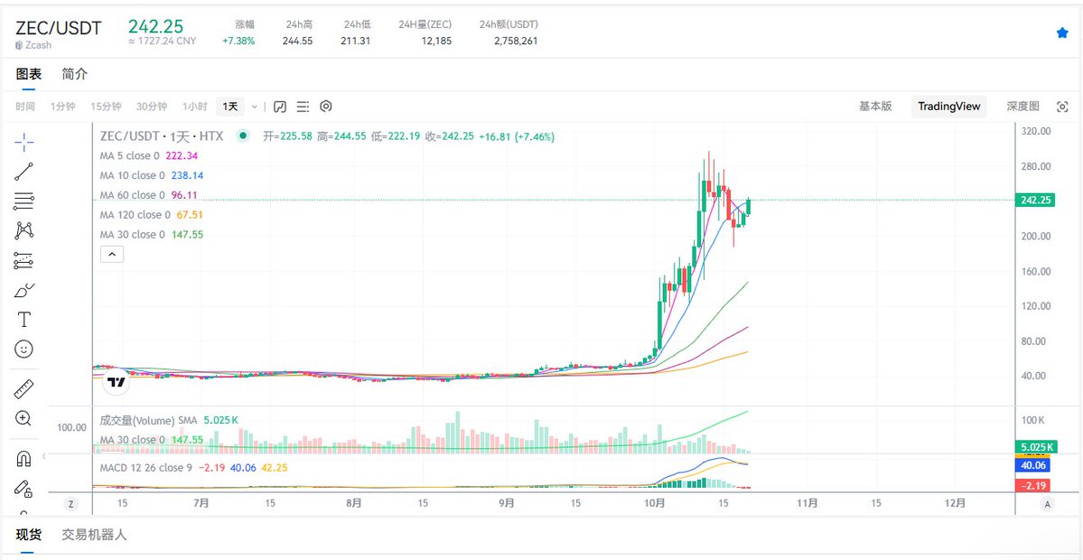 今日现货推荐 260附近买入ZEC 280以上出局