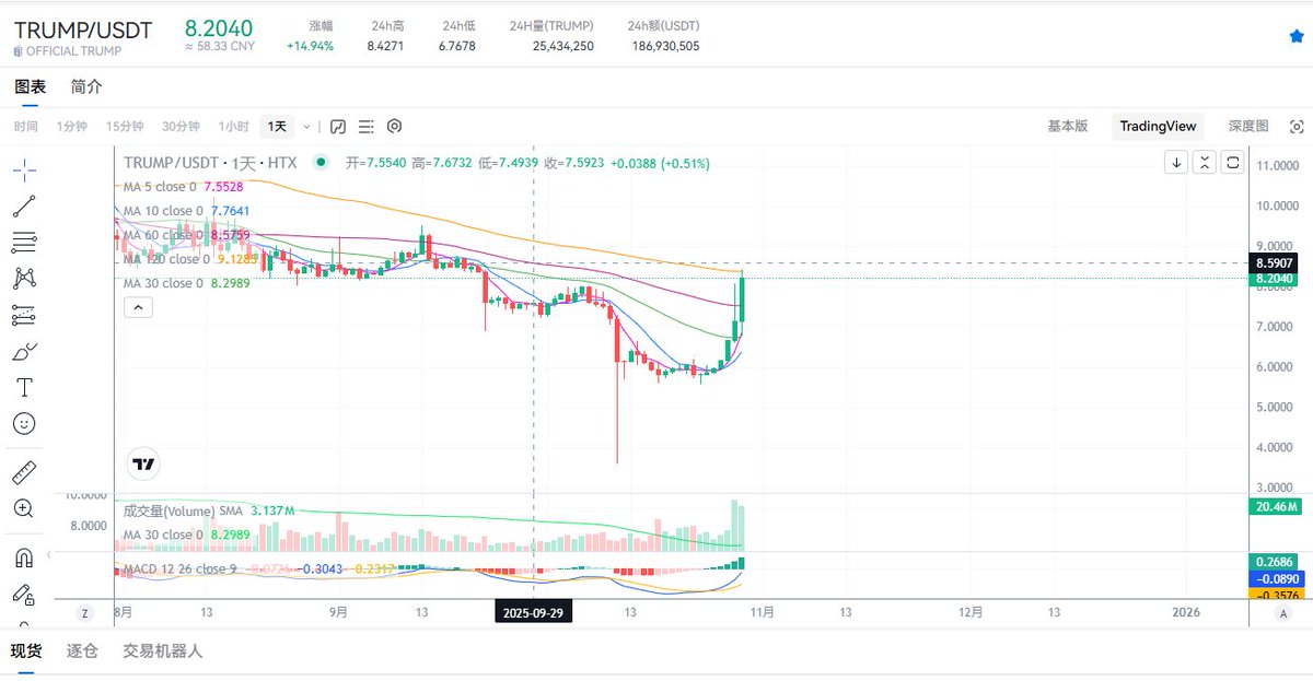 今天让买入TRUMP,现在它已经涨到8多了,跟上的姐妹赚钱了