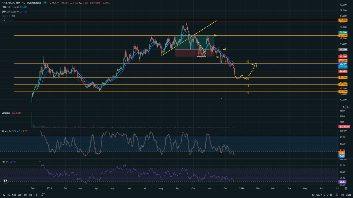 最受欢迎加密货币代币:BTC 是绝对领先者,被20位分析师提及(71%的分析师持有或看好)。HYPE(Hyperliquid)紧随其后,被16位分析师提及,显示出其在去中心化交易领域的受关注度。SOL 和 ETH 也位居前列,分别被13和11位分析师提及。