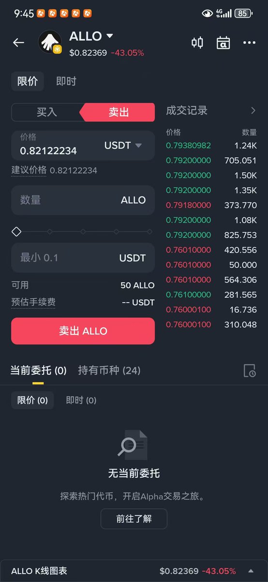 $ALLO 领取ALPHA的还没卖,一会上线币安现货,能不能拉起飞?