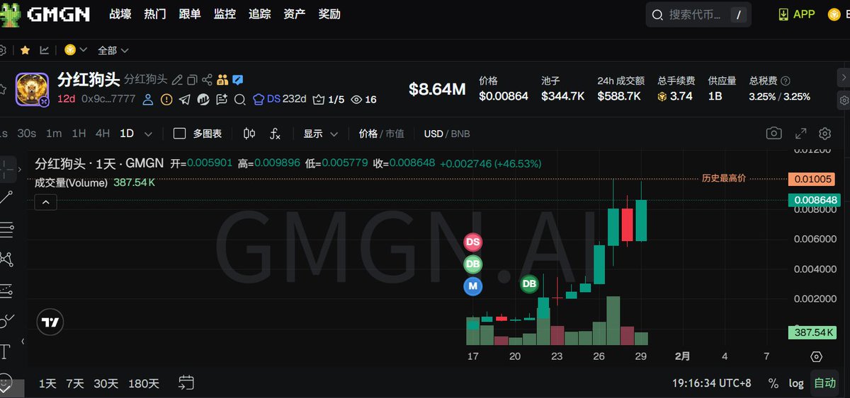 再结合前面的逻辑,其实就很清楚了。社区活跃、交易有分红、拿着币能回血,再叠加老 BSC 团队的风格,这种项目在熊市里反而更容易跑出来。因为它不靠讲未来,靠的是现在就能给反馈。