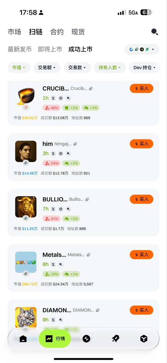 直接就可以通过该板块迅速锁定热点代币,可节约时间提高效率