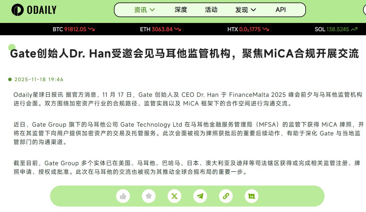 @Gate_zh创始人 Dr. Han 最近受邀在 FinanceMalta 2025 峰会前,专门和马耳他监管机构会面,重点聊的就是加密行业的合规路径、监管实践,以及在欧盟 MiCA 框架下怎么合作。注意一点:Gate Group 旗下马耳他公司 Gate Technology Ltd 已在 MFSA 监管下拿到 MiCA 牌照,可以在当地合规提供交易和托管服务,这次会面其实就是牌照之后进一步深度沟通。