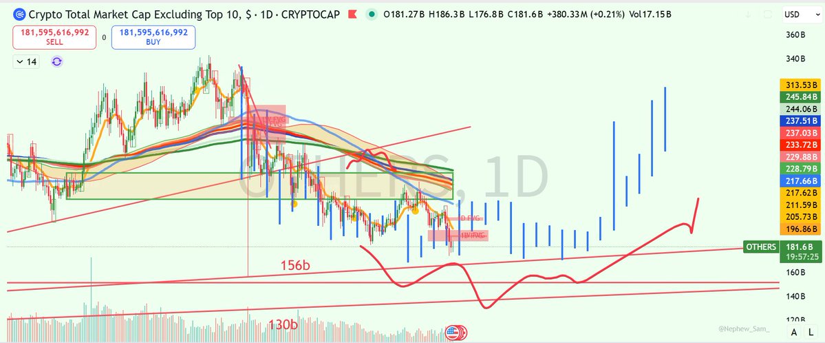若比特币在此处(~74)反弹,OTHERS的反弹目标在220b左右