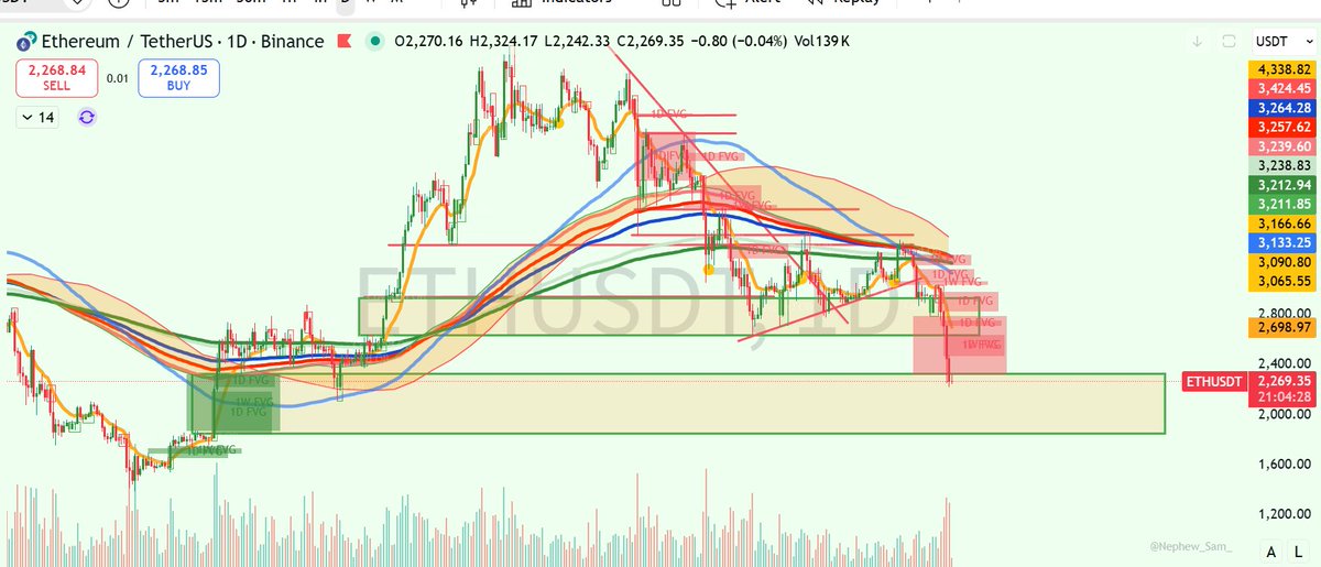 如果BTC短时反弹至9万以上,对应ETH反弹在2650-2930之间。反弹后认为大概率会继续跌